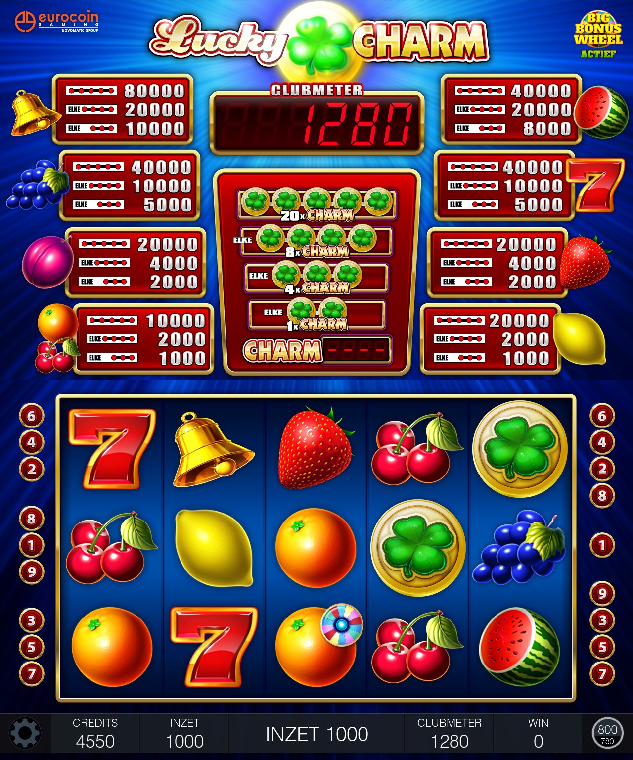 Elke combinatie van 3 of meer aaneengesloten gelijke symbolen op winlijn geeft prijs. 2 of meer Charm symbolen op winlijn geven de prijs in de Charm meter met een maximale vermengivuldiging tot x20.